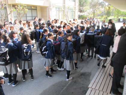 この後、新入生は体育館に入って、礼儀作法について諸注意を受けます。