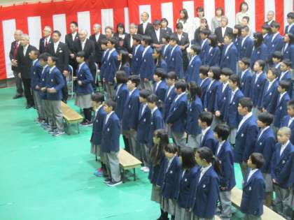 国歌、校歌斉唱に続いて、新入生呼名です。