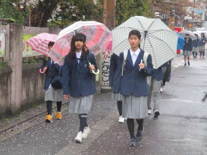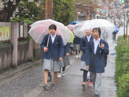 しかし、校門の2本のさくらは案外しっかりと堪えています。おそらっ開花の時期が遅かったためでしょう。がんばれ!