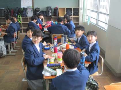 1年生は準備が遅れて、2・3年が食べ終わる頃にやっと食べ始めることになりました。でも、ご安心を!徐々に慣れて早く準備ができるようになりますから。