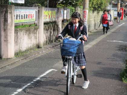 挨拶する際、慌てて自転車を降りようとしました。明日からは乗ったままでいいよ。