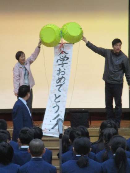 くす玉わりの場面では、くす玉が落下するというハプニングがありました。(下に誰もいなくて本当によかった!)