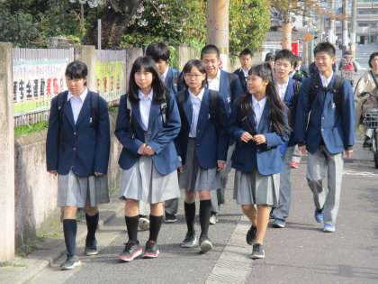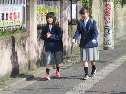 爽やかな朝になりました。そして爽やかな朝日の中を生徒たちが登校してきました。
