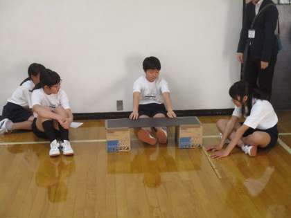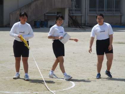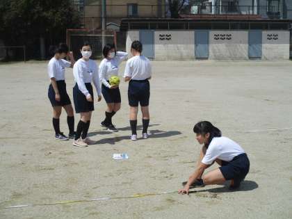 体育館の中でもそれぞれの能力を測定しています。