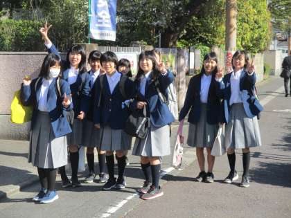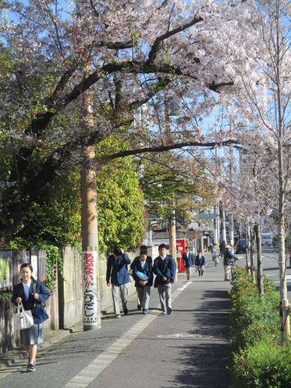 校門の桜に負けず、何時までも心の花を咲かせ続けましょう。