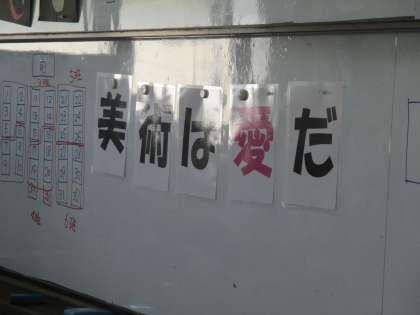 前のホワイトボードに張られた「美術は愛だ」が印象的でした。