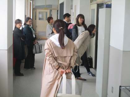 3年の廊下にもたくさんの保護者の方が居られました。