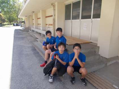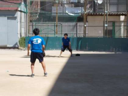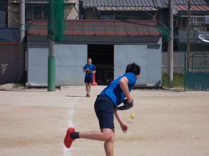 水泳部は二条城をランニングの後、グランドでボール投げ練習です。