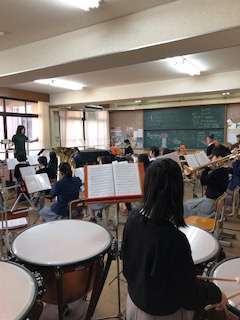 ちょうど合奏をしていました。それまでは各パートなどで練習をしていたのでしょう。