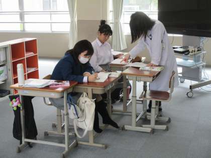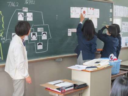 3−5は数学、2−1は家庭科です。2−1の家庭科はサザエさん一家を例に取り上げての学習で、とても楽しそうでした。