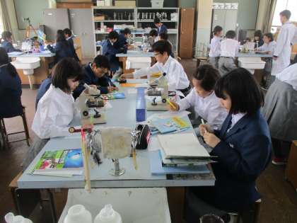 顕微鏡を使っての観察です。
