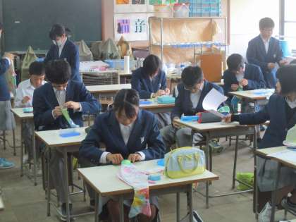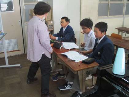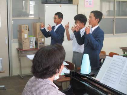 2−5の音楽では校歌の練習をしていました。