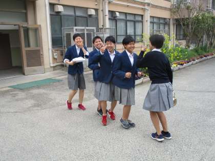 中庭でサザエさんごっこを楽しむバレー部の女の子たちの様子から紹介していきます。