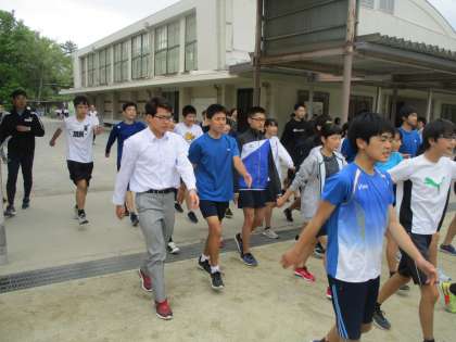 激励会は、明日の4時間目(11時40分〜12時30分)にグランドで行います。