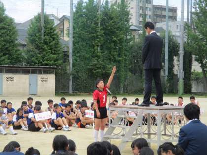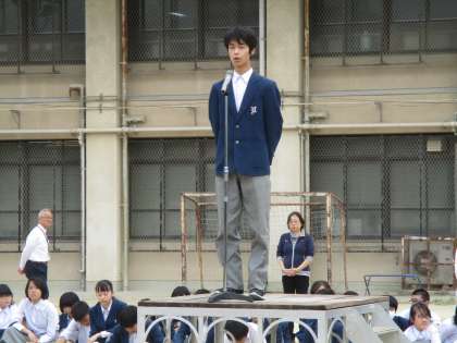 その後、在校生代表の激励、選手宣誓と続きました。選手宣誓はバレー部のキャプテンです。立派な宣誓でした。