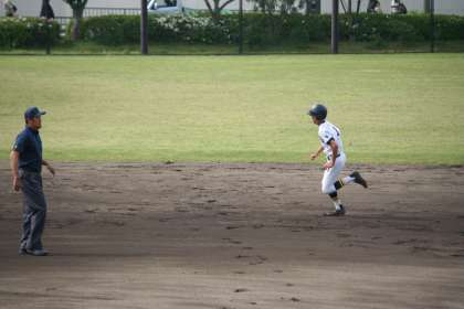 初回、先頭バッターの野原君はライト線へ鋭い打球を放ちます。