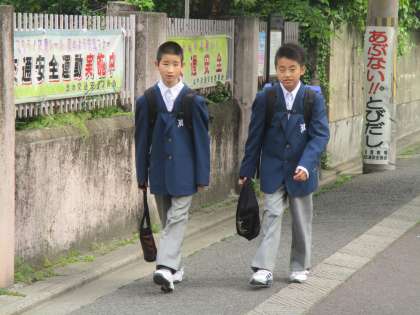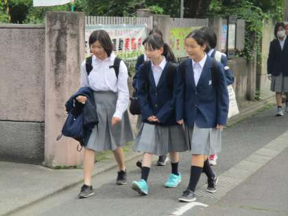 曇り空になりました。でも、生徒たちは今日も元気に登校してきました。