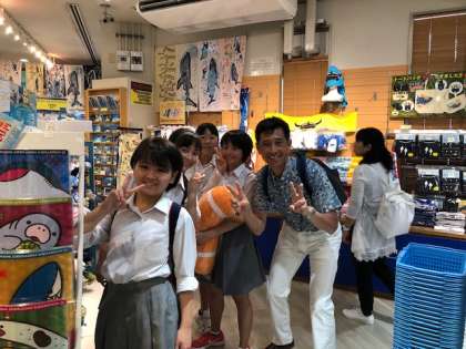 こちらでお土産も購入できます。人気はジンベイザメグッズやちんあなご?