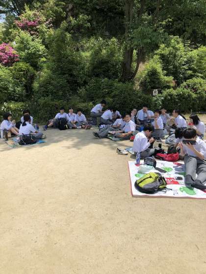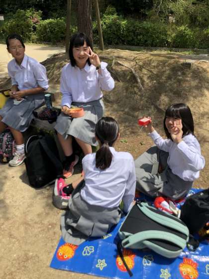 お天気にも恵まれました。みんな楽しそうにお昼ごはんを食べいています。さあ,食べ終わったら,ウォークラリー再開です。