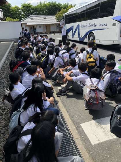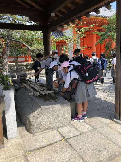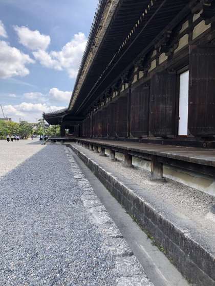 京都東山周辺ウォークラリーの最終ゴール地点は三十三間堂です。こちらもすべての班がきっちり時間内に到着することができました。みんな素晴らしい。こちらでは,三十三間堂の中に入りました。お堂の中は撮影禁止だったので写真は撮れなかったのですが,中は1001体もの千手観音像があり,圧巻でした。