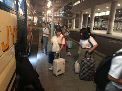 バスは順次、到着しています。バスの中の様子です。