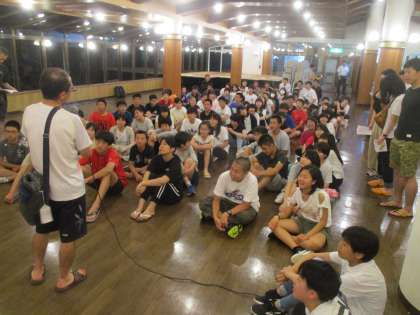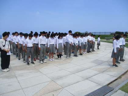 生徒の良い所をたくさん見つけることが出来た3日間でした。一人ひとりの意外な一面を発見したりもしましたが、集団としてもたくさんあります。私の場合、特に印象に残っている場面は「平和セレモニー」と「海での活動」です。“静”と“動”の二つのこの場面は、私にこの学年の姿を改めて認識させてくれたと思っています。