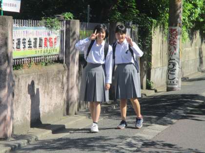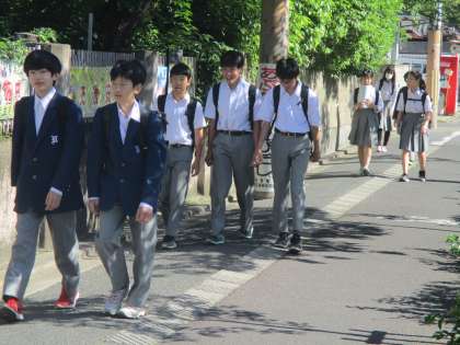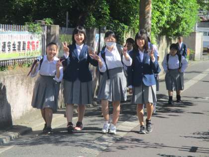 友達同士で揉ん愛を出し合いながら登校してくる様子を懐かしく見ていました。