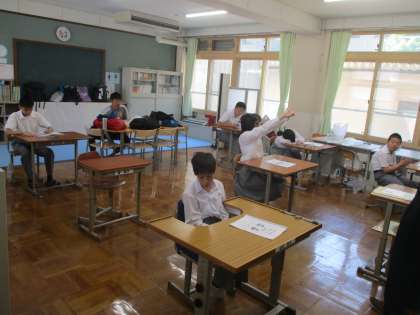 6組は、テストが終了するときの状況とテストが終わってからの様子です。3年生は、別室で別の問題を受験しています。