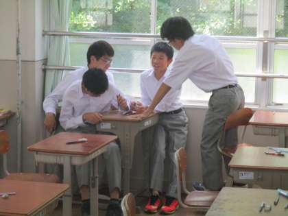 おしゃべりしたり、今のテストの答えを確認したり、次のテストの勉強をしたり…。