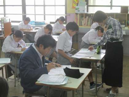 3組が国語、2組は美術です。美術では絵文字に挑戦です。さあて、今年の1年生はどんな作品を仕上げるでしょうか。