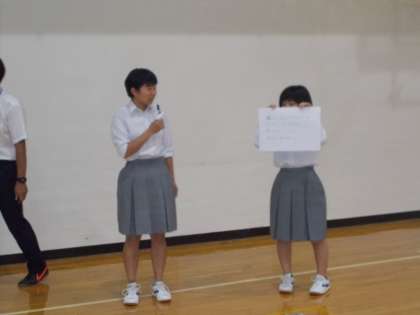 5組の生徒を意識して、発表要約を紙に書いての発表です。