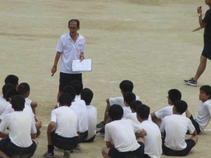 準備運動が終わったところで、召集の練習や実際に走ってみたりしています。