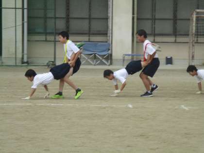 1年の団体競技のリレーは観ていて楽しいです。