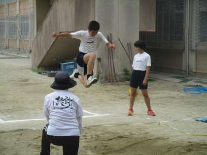 本格的な技術は難しいので、速く走って長く空中に居るようにすることが大事です。