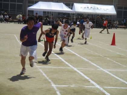 最近は女子の部活動対抗リレーで走るようになりました。校長は大抵アンカーを任されます。ゴール間際で面白く熱い闘いを何度も繰り広げてきたと思っています。
