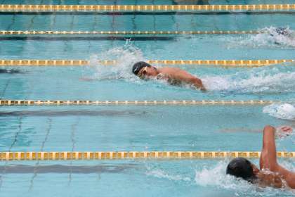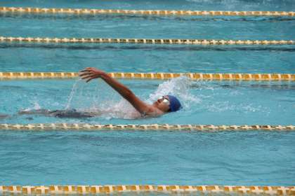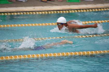 男子200メートル自由形では、最後の最後に追い抜かれて2位でした。惜しいなあ。