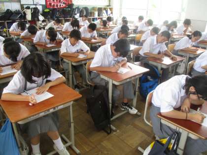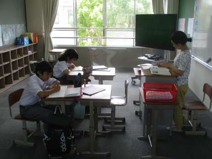 5組は国語、そして3組は理科です。理科の時間には小テストが行われていました。いつもは活気がある3組がシーン!としているので『何ごとか!?』と思ったくらいです。