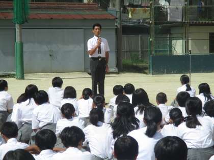 ○この学校が万が一「避難所」になったとき、皆さんには避難してこられる人たちのお世話をする側になってもらわなければなりません。今からその覚悟と決意で居てほしいと思います。
