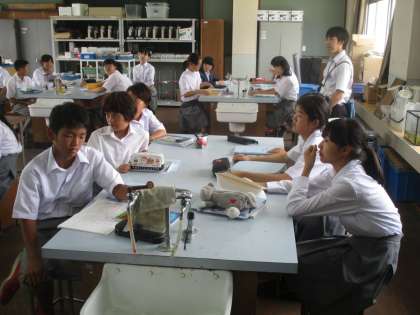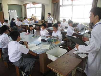 1組は理科です。理科室で学習していました。