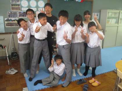 休憩時間に6組の教室へ行きました。楽しくゲームをしていたのですが、写真を撮ることになりました。