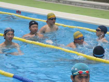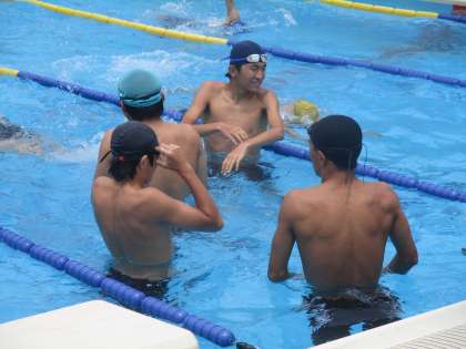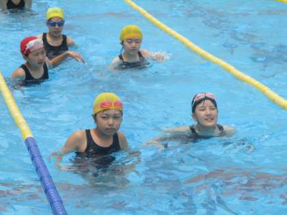 今日は初めての水泳の授業ということで、25メートルのタイムトライヤルをしていました。