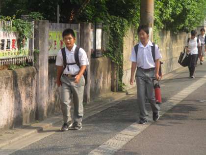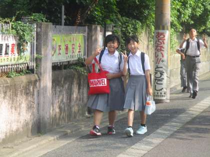 今日も良い天気です。予報によると、昨日よりさらに熱くなりそうだということです。確かに、校門に立っているだけでも背中や額に汗がにじんできました。