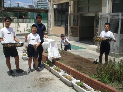 6組は作業の時間にジャガイモの収穫を行いました。