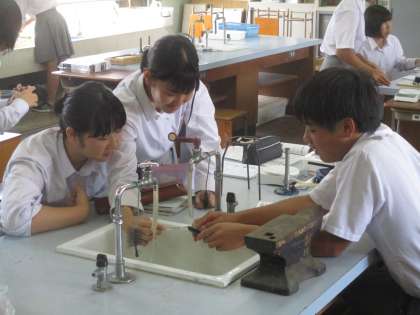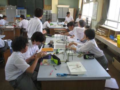 3組は理科。熱心に実験結果を見つめていました。