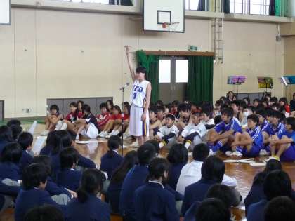 1日中、天候が安定しない中、本館講堂にて「春季体育大会激励会」が行われました。生徒会旗を持った本部役員を先頭に、体育系部活動の選手が、行進に参加しない生徒の拍手の中、元気よく入場いたしました。そして、校長先生からの選手達への「激励のことば」があり、それにこたえて、女子バスケットボール部のキャプテンが選手を代表して、元気よく「選手宣誓」をしてくれました。各部活動の検討を期待します。