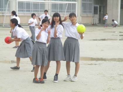 水たまりが残るグランドで、生徒たちは今日も元気に遊んでいました。