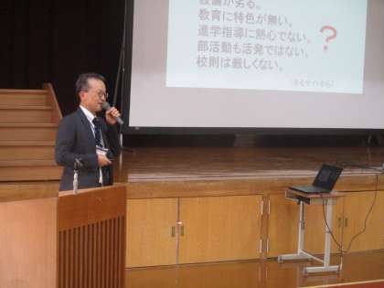 公立高校からは嵯峨野高校、私立高校からは花園高校の先生に来ていただきましたが、基本的には公立高校全般、私立高校全般についてのお話をして頂きました。