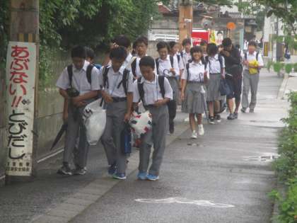 どんよりとした梅雨空なんて、二条中学校の生徒の元気さと明るさで吹き飛ばしてください。