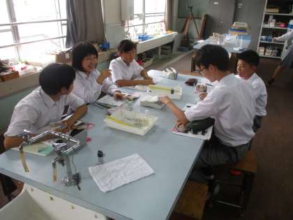 理科室で実験です。