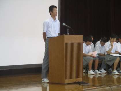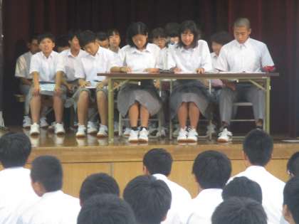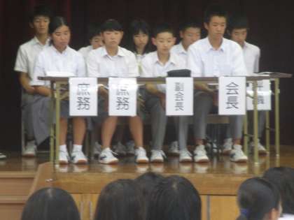写真は、議長団・提案者と生徒会長の「はじめの言葉」です。